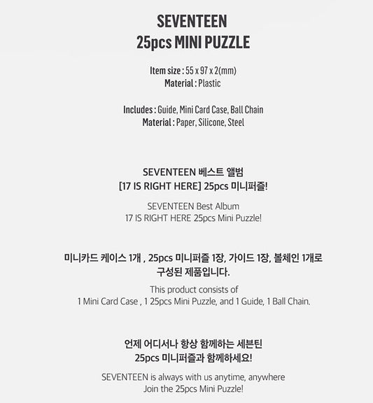 [SEVENTEEN] 25pcs Mini Puzzle (17 IS RIGHT HERE) OFFICIAL MD (Member type)