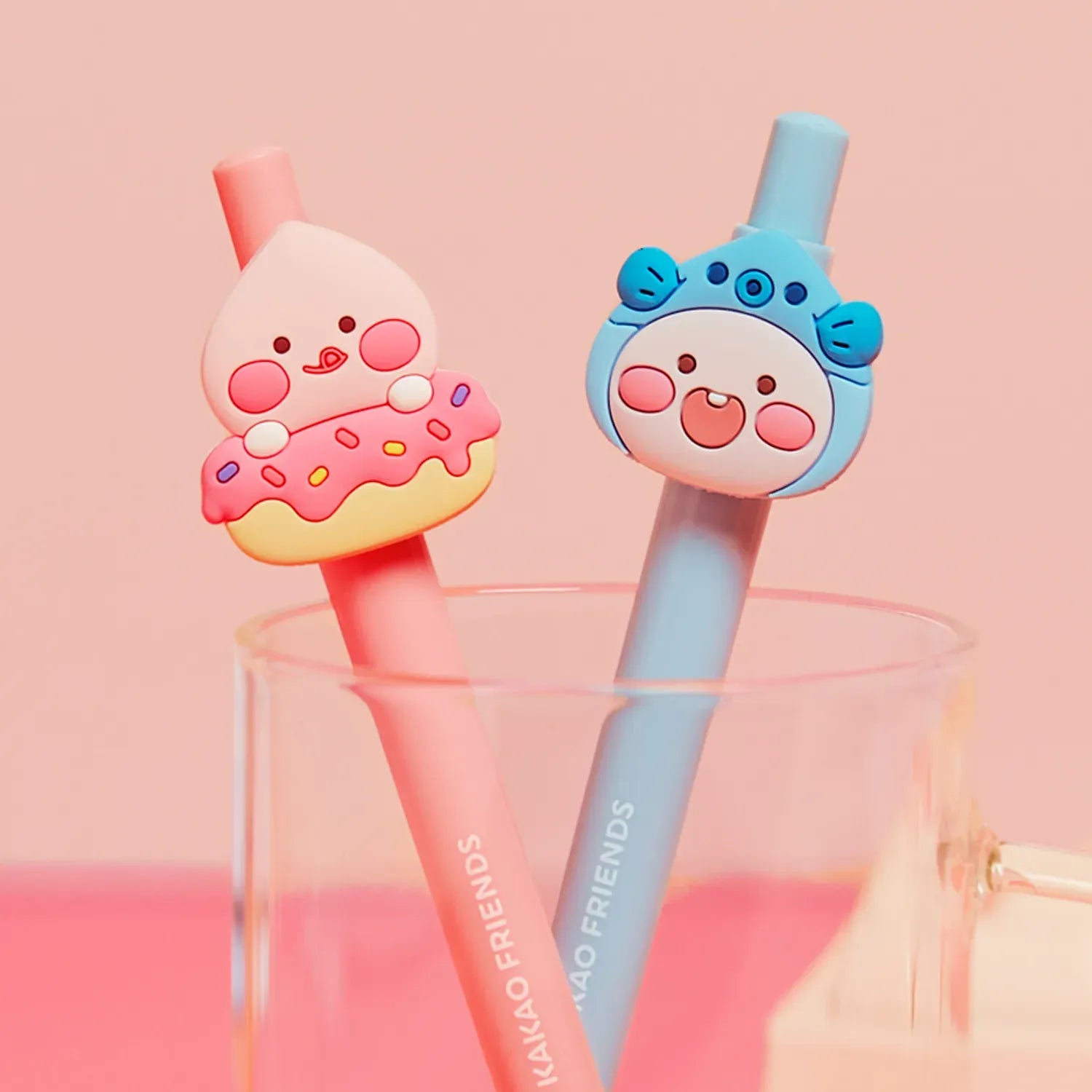 This pink gel pen features Little Apeach in a donut-shaped topper, making it both adorable and fun to use. A perfect gift for students, stationery lovers, or K-character fans!