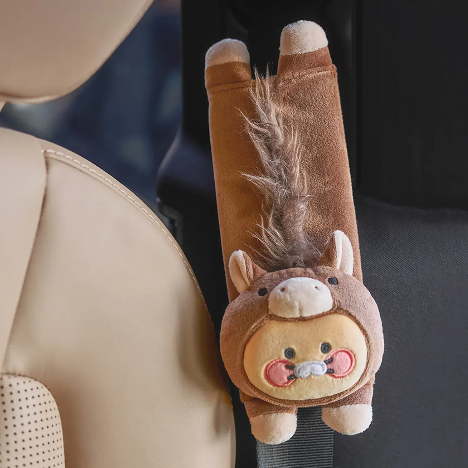 This seat belt cover features Chunsik in a Lucky Pony Day costume.