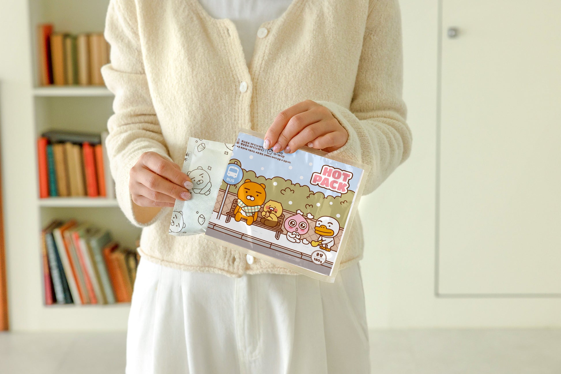 The Kakao Friends hot pack holder keeps your hands warm anytime, anywhere.